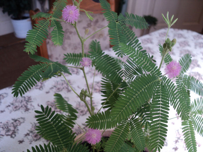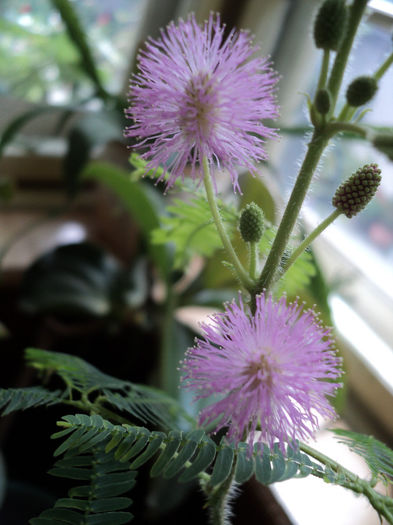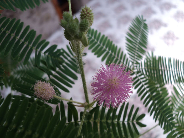 Daca erau din copac ar putea sa fie de gradina.Se numeste albitzia si creste afara,tufa sau pomisor.Cea de interior este de doua feluri:una mai inalta care oricat o tai tot se inalta nu se ramifica prea mult;si una mai pitica.Asta se ramifica dejos,face tufa ,ramuri de jos cu flori.Dar oricum ar fi,e dulce.Iti vine sa-i mananci florile.